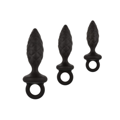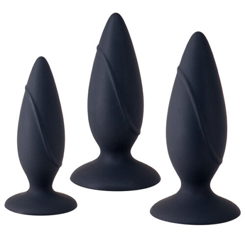 Analni dildo set kupastog oblika,  napravljen od veoma kvalitetnog silikonskog materijala koji se lako penetrira zbog glatke spoljašnjosti. Svi koji praktikuju i uživaju u analnim sexy igricama moraju posedovati ovaj zanimljiv set.  Analni dildo set poseduje tri dilda istog oblika, različitih dimenzija, najveći 15 x 5cm, srednji 10 x 3,5cm, najmanji 8 x 2,6cm. Analni dildo set-svaki dildo na svom dnu poseduje vakuumsku bazu. Predlažemo upotrebu analnog lubrikanta na vodenoj bazi.