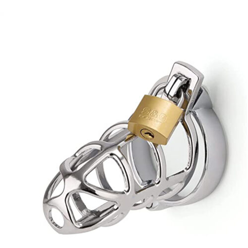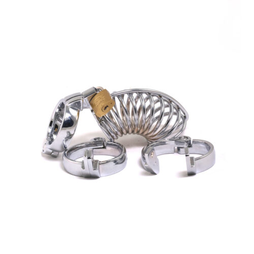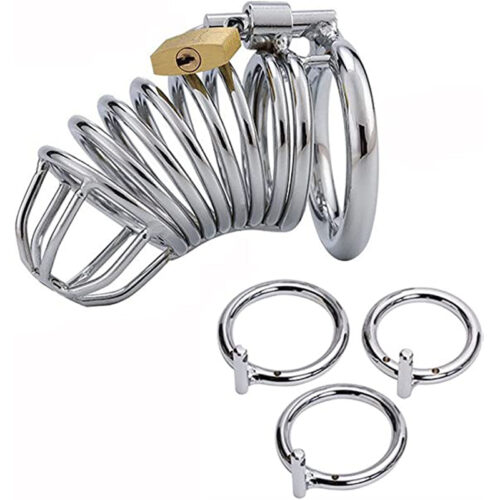 Metalni kavez za penis 5Dugo ste čekali na njega, novo u našoj ponudi- Metalni kavez za penis 5.Izrađen od hiruškog čelika medicinski ispitan i bezbedan za upotrebu. Njegov neverovatni dizajn sa nizom prstenova celom dužinom kaveza i katancem koji poseduje 2 ključa kako bi zaključali vašeg mališu. Ako ste ste novi na polju BDMSa i još uvek istražujete  u igricama dominacije morate probati ovaj neverovatan proizvod. Ukupna dužina kaveza je 8cm, sa prstenom na sebi dužina iznosi 10cm, dok je unutrašnji prečnik 3,5cm. U pakovanju dobijate tri prstena prečnika 1 prsten-4,3cm, 2 prsten- 4,6cm i 3 prsten- 5cm. Ovaj novi vid nametnute uzdržanosti pomeriće granice vaše izdržljivosti i pojačati ostala čula.Što se tiče postavljanja jednostavno je u nekoliko poteza prema uputstvu u pakovanju. Za održavanje je preporuka koristiti toplu vodu i Toys cleaner.