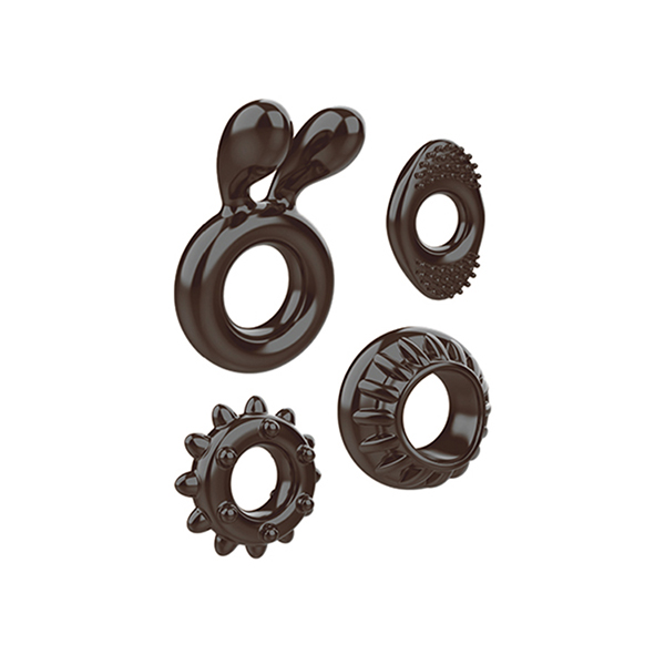 Set prstenova za penis različitih oblika i struktura za snažniju i čvršću erekciju i stimulaciju vaše partnerke. Napravljeni su od TPE materijala nežne površine, bez ftalata i štetnih supstanci. Dovoljno se rastežu tako da će odgovarati skoro svim veličinama penisa. U pakovanju dobijate četri prstena od kojih zeka prsten ima ukupnu veličinu 6cm i prečnik prstena od 4cm, točak prsten širinu 5cm, prsten sa bodljicama ima širinu od 4cm i prsten sa duplim nastavcima za stimulaciju ima ukupnu dužinu od 5,8cm dok je širina samog šrestena 4cm. Poručite set prstenova za penis i uživajte zajedno sa partnerkom u čvrstoj erekciji i prijatnoj stimulaciji.Za pregled svih proizvoda pogledajte kategoriju prstenovi za penis.
