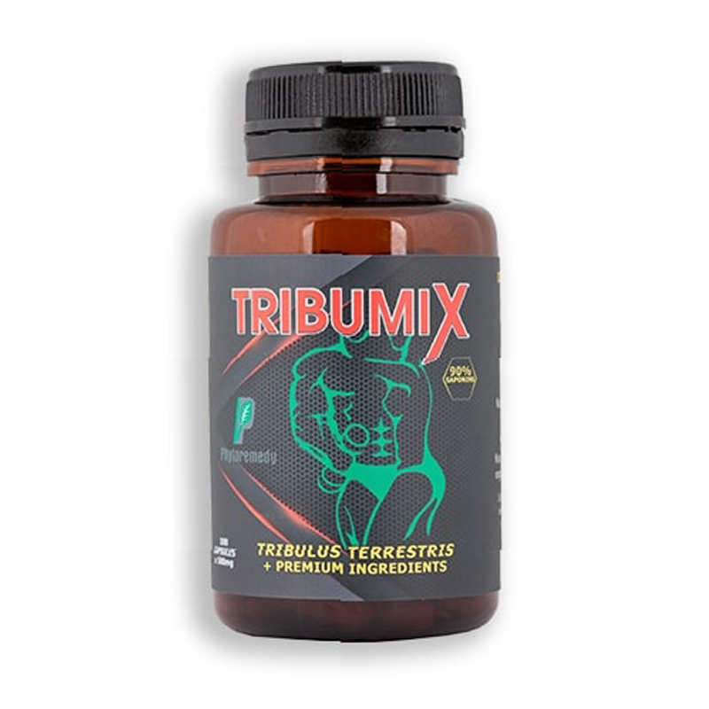 Tribulus TRIBUMIXPodizanje nivoa Testosterona na prirodan način. Smanjenje nivoa Kortizola. —— Podizanje tonusa i mase mišića.– Podizanje izdržljivosti i energetskog statusa organizma. Poboljšanje psiho -fizičkog stanja organizma. Poboljšanje libida, potencije i stvaranja spermatozoida.Da bi se Testosteron stvarao u organizmu potrebno je nekoliko preduslova.– Prvi je starosna dob. Do 30 godina starosti stvara se više nego kod starijih osoba.– Drugi, izuzetno važan preduslov jeste smanjenje nivoa Kortizola ( hormona stresa ) koji je direktan antagon sintetisanju testosterona u organizmu. Ovom formulacijom otklonjeni su u velikoj meri uslovi za stvaranje Kortizola u telu. Pored toga, sadržani su i sastojci koji sinergetski deluju na postizanju maksimalnog ukupnog efekta ovog izuzetnog preparata. Medju njima su Ginseng Panax, Cordyceps Militaris, Goji Berry, Vitamini D, B5, B6, B12 i Kalijum.Sam Tribulus Terrestris, da bi bio aktivan, mora sadržati u ekstraktu SVE delove biljke a snaga mu se meri jačinom ekstrakta. U TRIBUMIX-u je ekstrakt standardizovan na min. 90% Saponina.Lako je izračunati potentnost takvog ekstrakta u odnosu na, uglavnom upotrebljavane,do max. 45% Saponina. Da ne spominjemo mnoge preparate koji čak uopšte ne sadrže ekstrakte već prostu, sprašenu biljku. Takvi preparati su suviše slabi da bi bili aktivni. Tribulus se preporučuje kao nesteroidni preparat biljnog porekla koji na prirodannačin povećava proizvodnju vlastitog testosterona.Velike koristi od uzimanja tribulusa mogu imati i muškarci i žene. Kliničke studije pokazuju da žene koje uzimaju tribulus imaju manje hormonskih disbalansa u menopauzi . Sportiskinje mogu izgubiti masno tkivo i povećati masu i snagu.Ostali efekti Tribulus terrestrisa su: sniženje nivoa holesterola, sniženje krvnog pritiska, povećanje erekcije kao i dužine trajanja i učestalosti seksualnih odnosa.Sastav: Tribulus Terrestris ekstrakt 10:1 standarizovan na 90% saponinaGinseng panax ekstrakt 20:1Cardyceps Millitaris ekstrakt 10:1B5 vitamin calcium panthotenateB6 vitamin pyridoxin hydrochlorideB12 vitamin cyanocobalamineD3 vitamin cholecalciferolumKalium citrateBroj kapsula : 100 komada